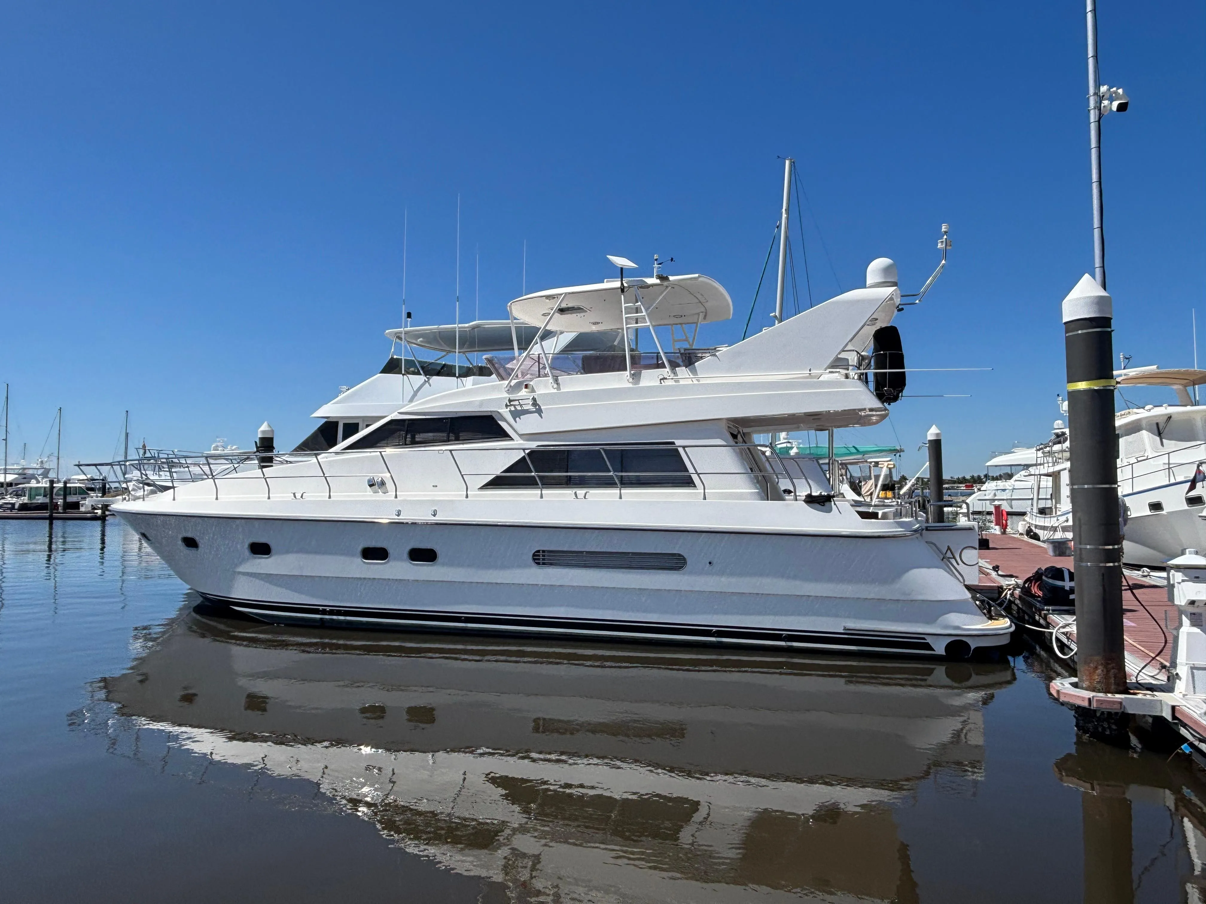 Motivated Seller. Sleek, contemporary Flybridge cruiser with a three-stateroom, two-head layout. Featuring a nicely apportioned aft deck that is covered and a spacious Flybridge with ample passenger seating. The Salon offers tremendous views with opulent creature comforts. The Galley and Dinette offer beautiful views of the outside within the comfort of a fully conditioned space (72k BTU chilled water Air Conditioning). The Flying bridge features a hard top and three-sided enclosure. There is also an outdoor seating area on the Bridge. The vessel is fitted with twin Detroit 6V92 Turbo Charged engines with Twin Disc transmissions and Tides Dripless shaft seals with cross-over cooling.