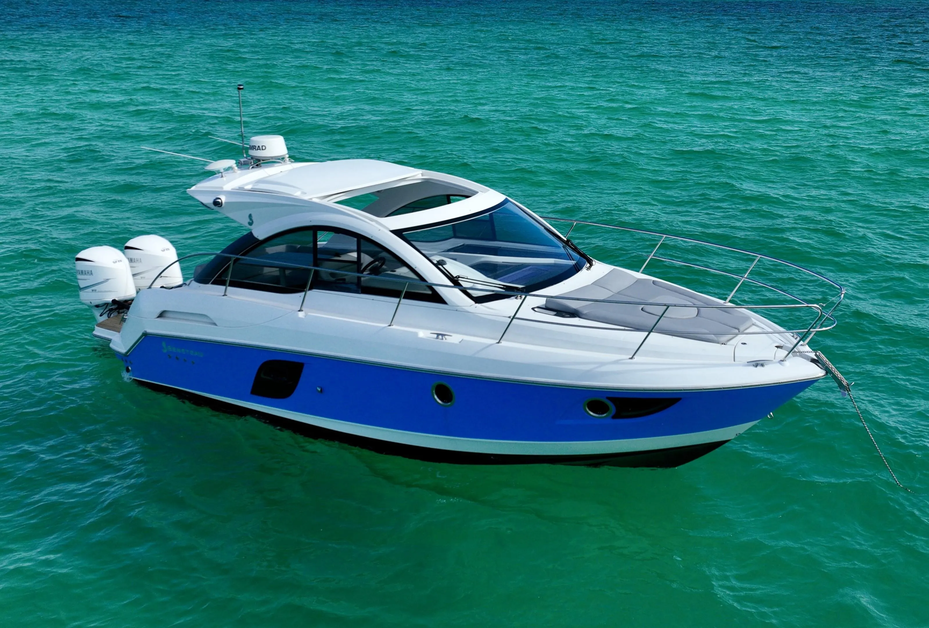 Step aboard this stunning 2012 Beneteau Gran Turismo 34, a gem designed for enthusiasts who relish both performance and comfort. This yacht has received over $150,000 in upgrades, making it an extraordinary purchase. Recently upgraded with twin Yamaha 350HP Outboard engines, boasting only 250 hours, this yacht promises both reliability and power.