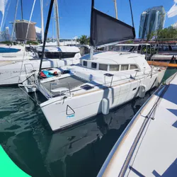 Lagoon 380, un best-seller reconnu dans sa catégorie. Il est rapide, facile à manœuvrer, sûr, et possède une légion de fans répartis à travers les océans du monde. Grâce à son gréement classique (GV + génois + gennaker + spi symétrique), Arcane est maniable et stable, même pour un équipage réduit. Sa configuration et son faible tirant d’eau permettent d’explorer sans contrainte les criques peu profondes ou les mouillages isolés. Les jupes arrière facilitent les baignades comme l’accès à l’annexe. Il séduit les navigateurs débutants comme confirmés.