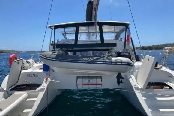 Arcane est également très bien équipé pour une croisière autonome (panneaux solaires, convertisseur, bimini, annexe motorisée).
