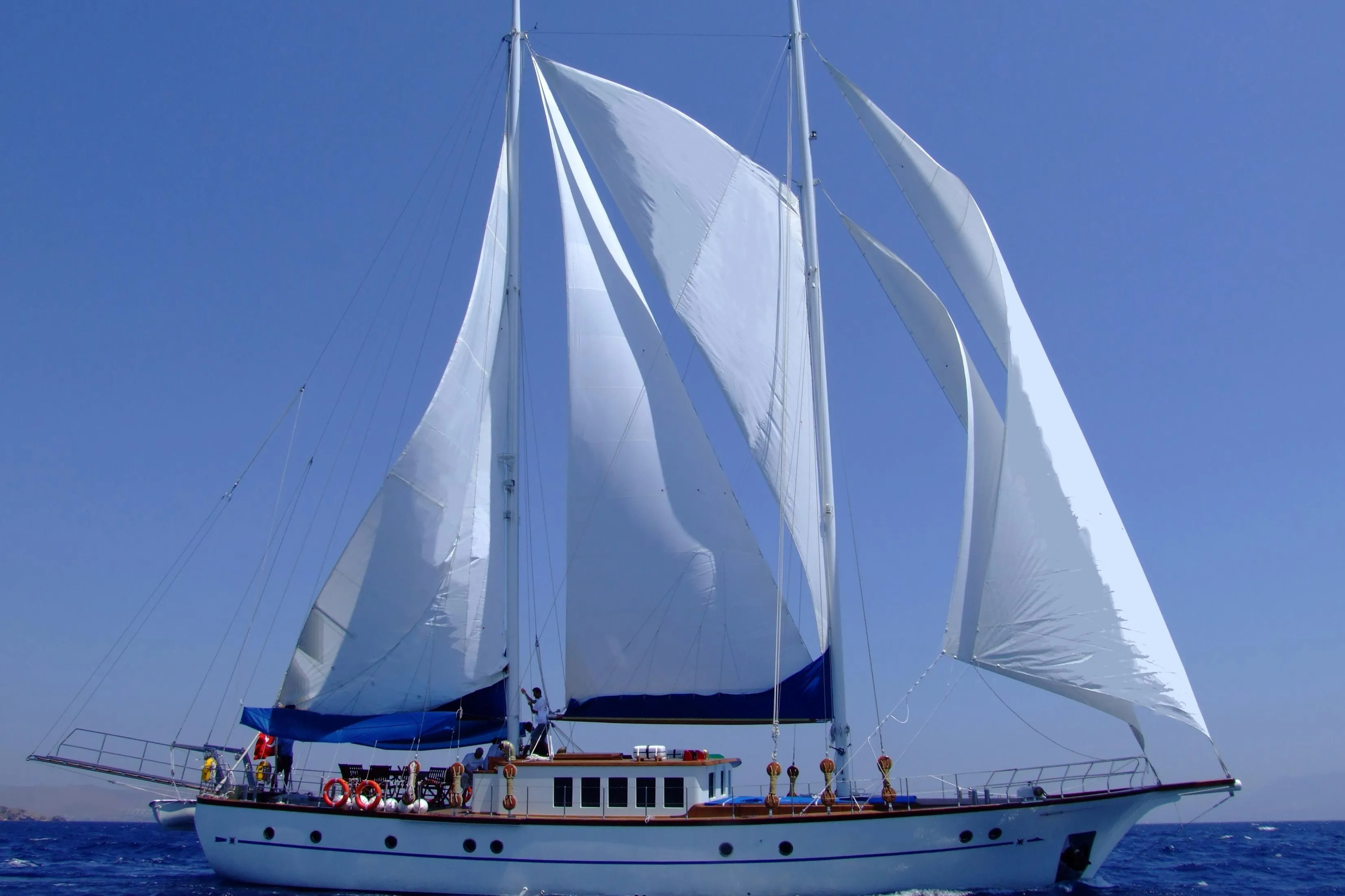 Built in 2006 by Aegean Yacht Shipyard, this 22.50 m steel motorsailer has been privately used since new and underwent a complete refit at our shipyard in the 2025–2026 winter season. She accommodates 8 guests in 4 double cabins, with separate crew quarters for 3 crew. CE Class, powered by twin engines (2 × 115 HP), and offered ready for cruising.