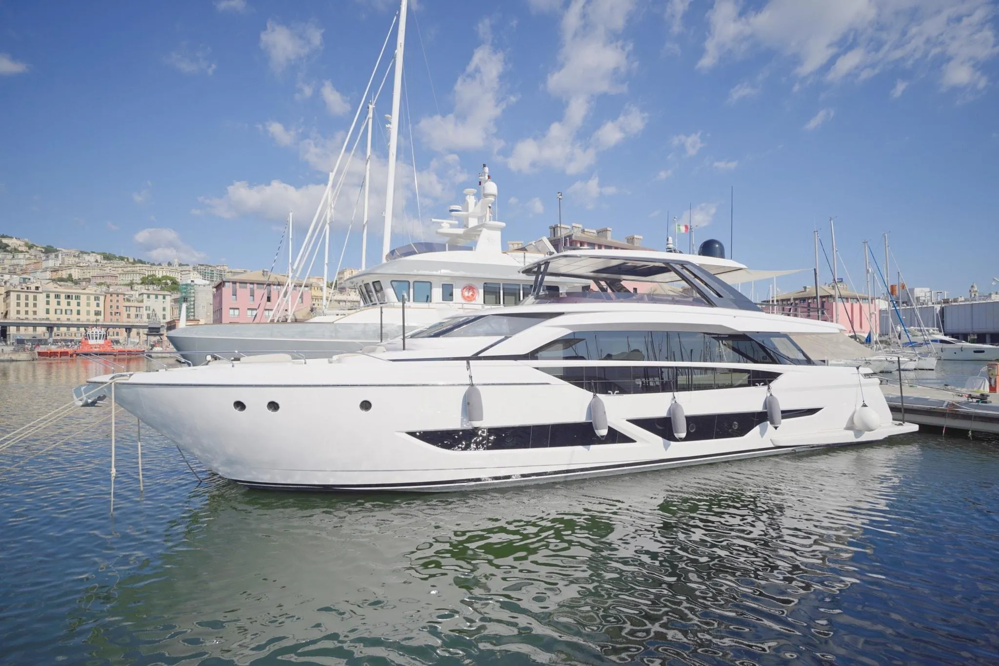 The new Ferretti 860 is a stylish and nimble cruiser capable of reaching speeds of over 30 knots, offering ample outdoor space and a beautiful, minimalist interior design