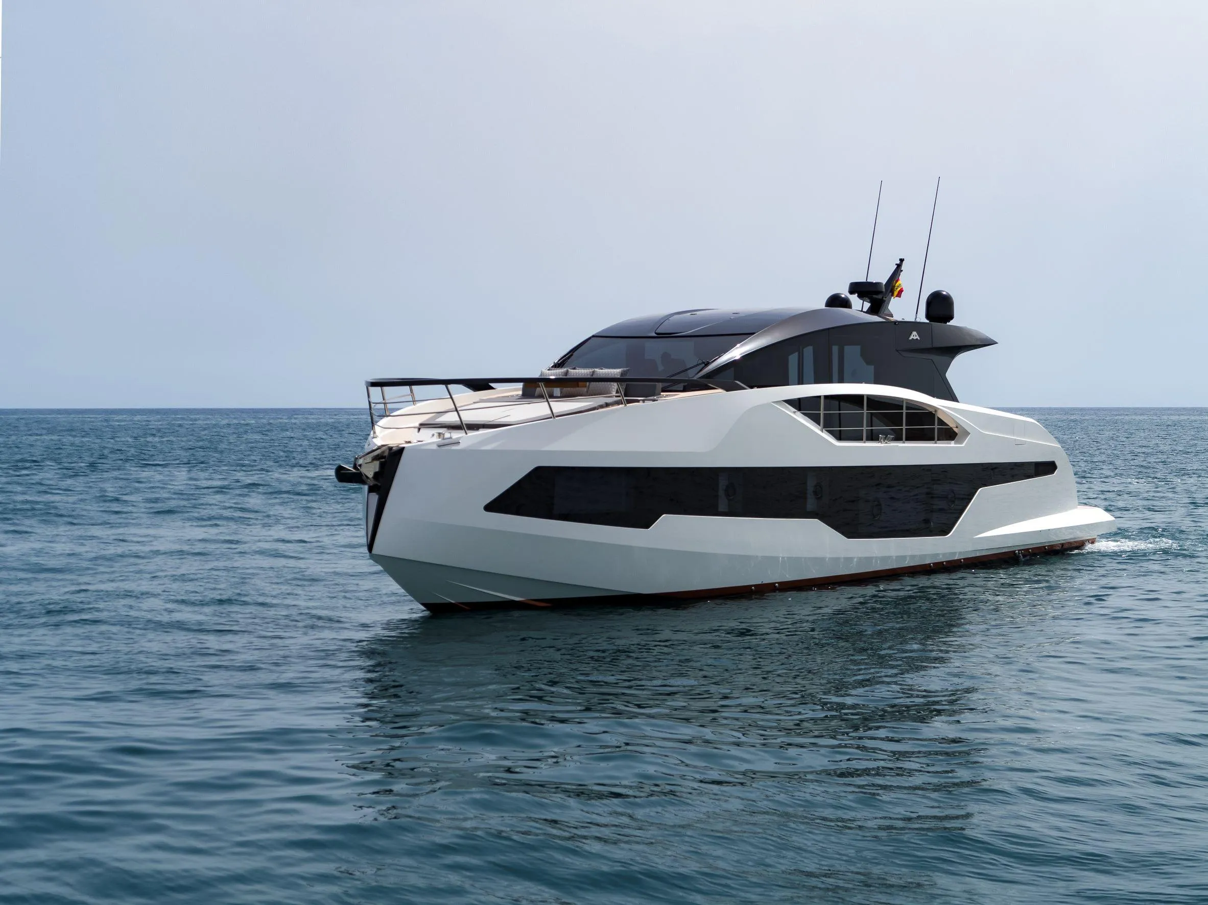 The 677 Coupe defies the standards in its segment, with its 18.94 meters in length, and is distinguished by its clean and sporty lines that flow along the length of the boat creating a suggestive and provocative profile.