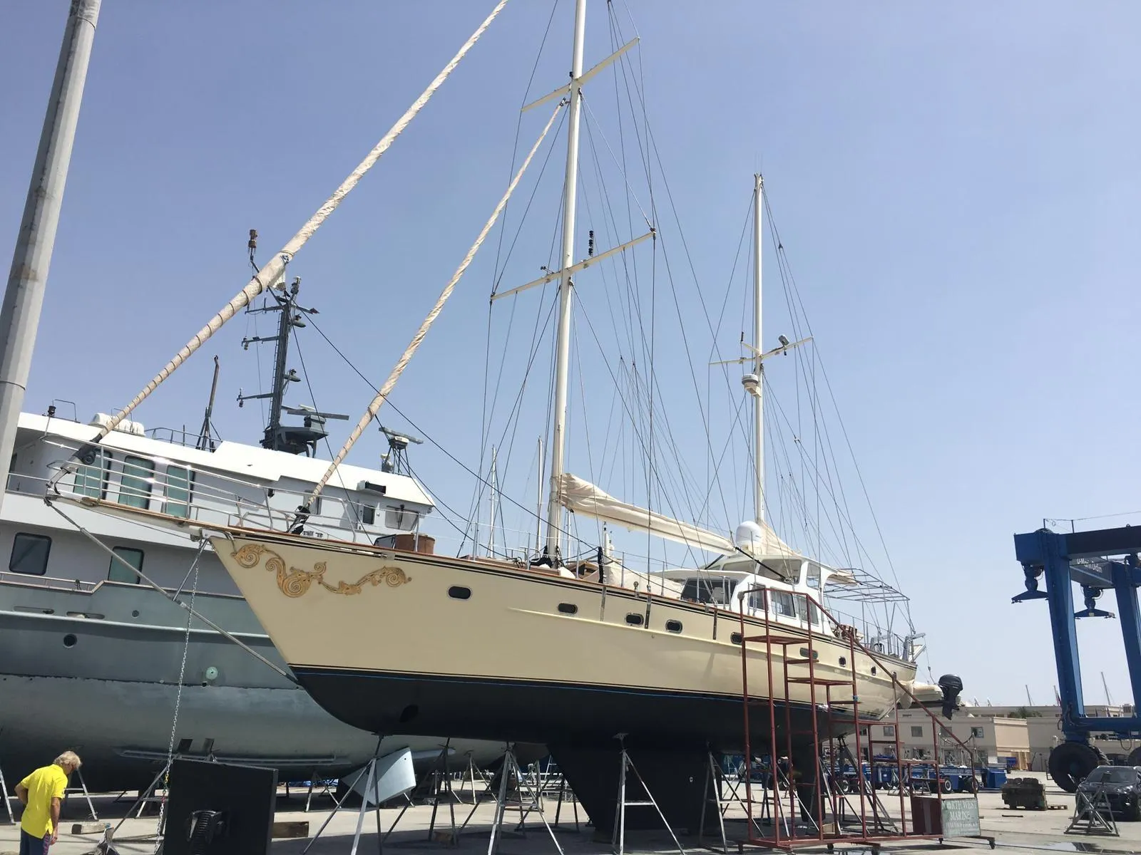 Completely REBUILT in 2009 with finest materials and perfect workmanship. She has 2 Master Cabins with en-suite bathroom/showers + 2 double cabins that share 1 bathroom/Shower . Engine , Generator, Sails, Deck, all electronics, everything is 2009 or newer.