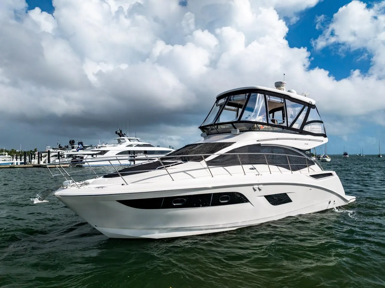 Sea Ray pioneered the Sedan Bridge. Years of building and refining the Sedan Bridge evolved into this Flybridge design. With tall, open spaces inside and out, the entire yacht works to keep you comfortable and secure on your trip.