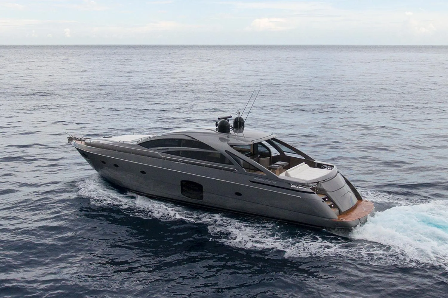 In any case, life on board will be lit by the large glass surfaces and the luxurious and sophisticated interiors with three cabins with bathroom and an automation system worthy of larger yachts. And for those who watch you from the dock or from another boat, the two large side wings will be the sign that Pershing has once again created an enviable masterpiece.