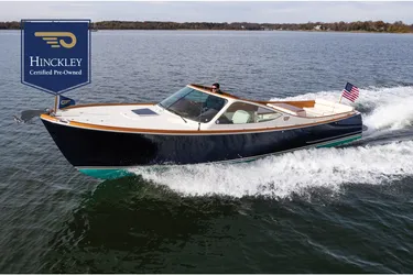 BALLYMENA (name reserved) is a low hour, late model Talaria 29 Runabout with many little touches that set her apart- teak decks, teak package, newer Garmin electronics, underwater lights, and bimini top. She is lift kept, lightly used, maintained with Hinckley service, and will convey with a one-year Hinckley Certified Pre-Owned (CPO) warranty.