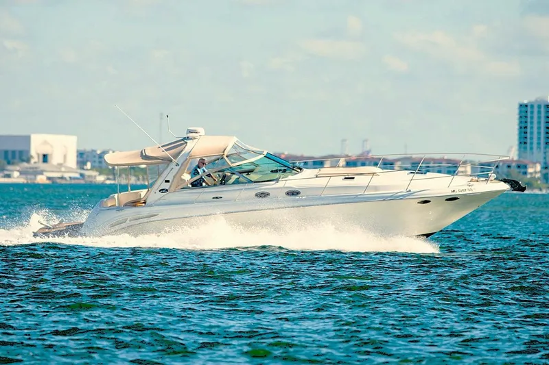 This is one of Sea Rays best performing models with power provided by Twin Cummins 450 HP straight drive engines with low original hours. No Pod or V-drives here just engines and reduction gears providing great reliability with speeds over 30 Knots and a fast 25 knot cruise.