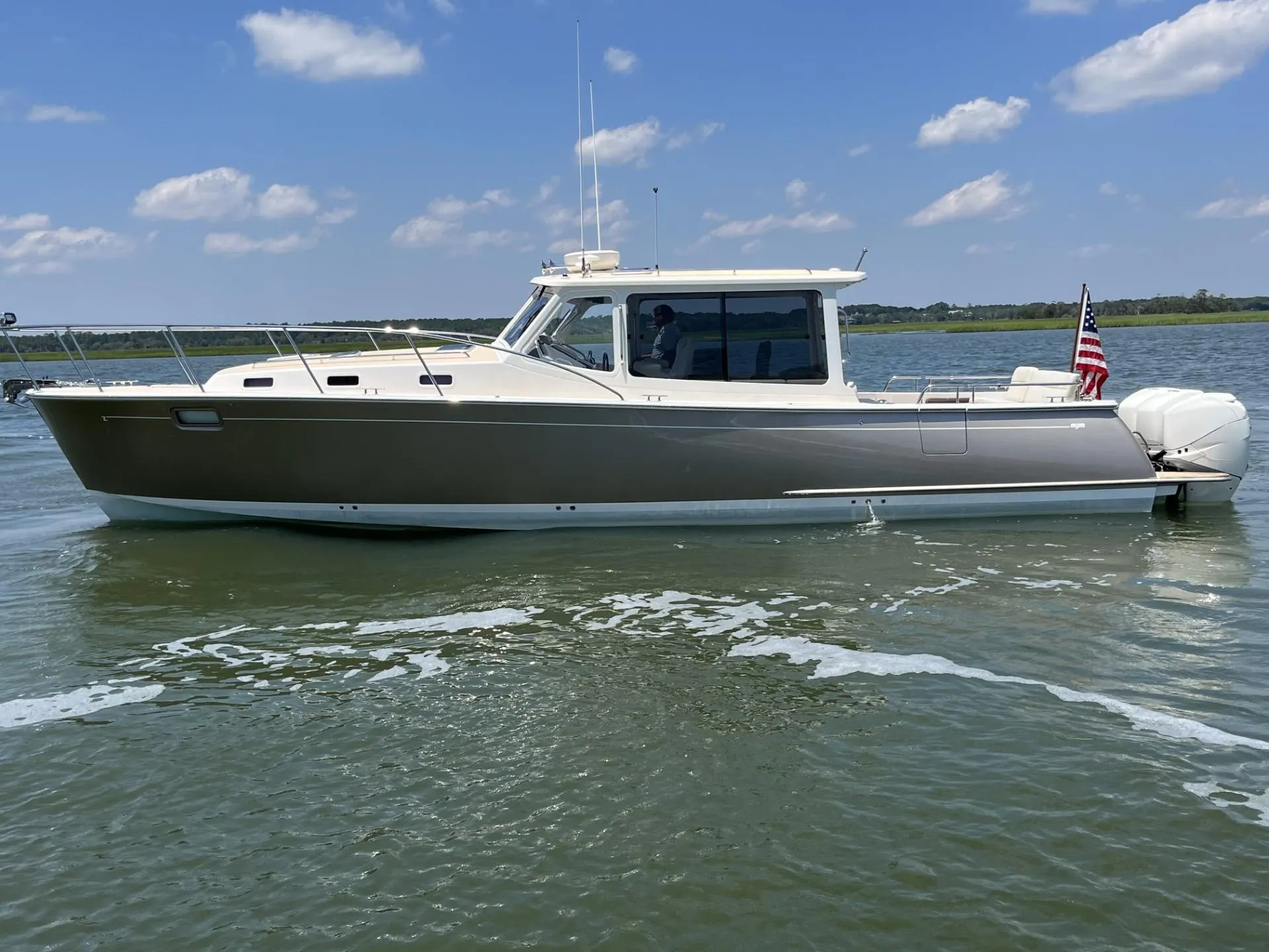 BARCODE is a very lightly used 43Z with all of the most desirable options including Mercury 400's, Seakeeper 6, generator, separate shower, sliding windows and the GOST system. Engines show 280 hours with 300 hour service just completed. She has been lift kept with a cover and shows like a new boat.