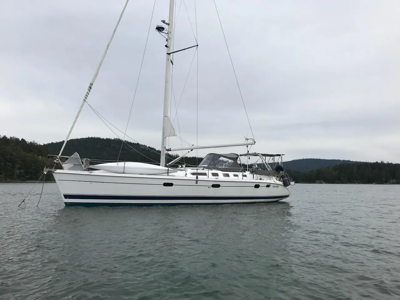 Bashful is one of the last Hunter 46 LE's built. This is a proven off-shore passage maker with a powerful sail plan and particularly strong Kevlar re-enforced hull. A knowledgeable original owner has maintained her to a high standard and continuously upgraded her. High quality components are used throughout the boat. Low hours Yanmar diesel, Selden B+R rig, Lewmar winches, Corian counter tops and Bose sound system. A custom arch carries a 520 watt solar and serves as a dingy davit.
