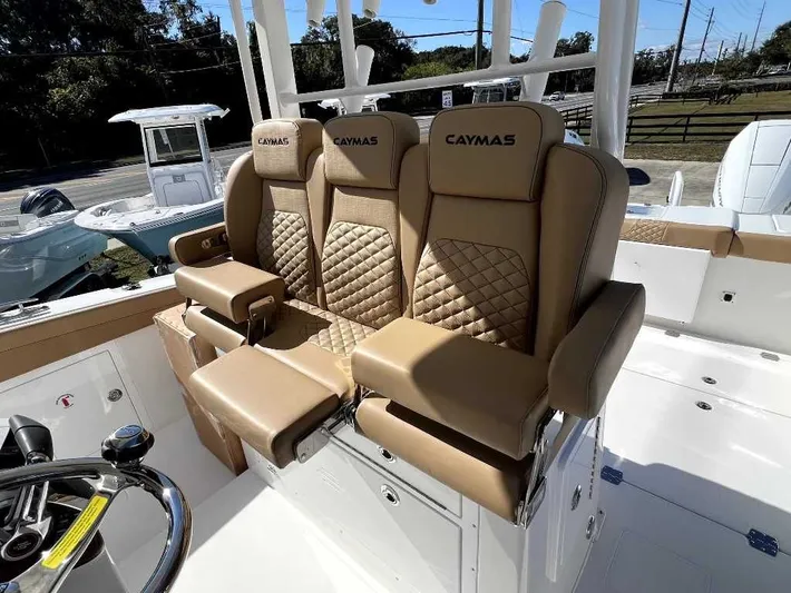 Introducing the stunning 2026 Caymas 34CT, a new center console boat that combines elegance with performance. With an overall length of 34.25 feet, this catamaran features a robust fiberglass hull designed for stability and efficiency on the water. Powered by twin Mercury 425 Verado Cold Fusion V10 outboard engines, this vessel delivers an impressive cruising speed of 45 mph and a maximum hull speed of 62 mph, ensuring exhilarating adventures. Equipped with an electric windlass and joystick control, the Caymas 34CT offers seamless handling and convenience. With a remarkable range of 500 miles, you can explore further and enjoy extended outings. The boat accommodates two heads, providing comfort for all aboard. This beautiful Caymas is perfect for those seeking a blend of luxury and high-performance boating, making every journey unforgettable. This is the one everyone is talking about. Come try the best cat on the market today. Call the professionals at Black label Marine Group today and let us make your fishing dreams a reality. We also offer great financing to make your boat buying process smooth and easy.