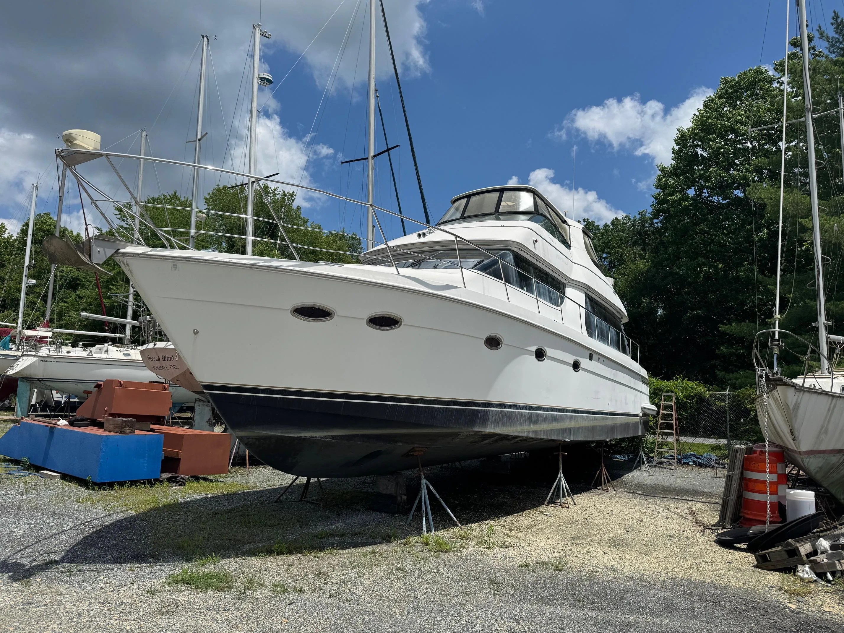 Introducing the stunning 2003 Carver 570 Voyager Pilothouse, a remarkable motor yacht that combines elegance and performance. With an impressive overall length of 59.17 feet, this vessel boasts a robust fiberglass hull designed in a deep Vee shape, ensuring a smooth and stable ride on the water. Powered by twin Cummins QSM 11 inboard engines, each delivering 635 horsepower, this yacht is equipped for exhilarating cruising experiences. The 4-blade bronze propellers enhance efficiency and maneuverability, making it a joy to navigate. Inside, the yacht features three well-appointed cabins and two heads, providing ample space for relaxation and comfort. The electric windlass adds convenience to anchoring, while the overall design reflects a commitment to quality and style. The BEAUTIFUL CRAZY is perfect for those seeking adventure and luxury on the open seas.