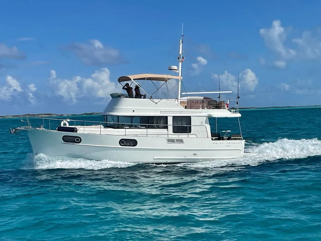 One owner ST44 that is well equipped with updates and upgrades now available. The main upgrade to this ST44 is the electrical system, it transformed this boat into a full off-grid cruising/diving vessel. You can now run any 110v appliances without starting the generator, you can run AC in the master bedroom all night on the batteries. With solar power the boat can stay almost indefinitely at anchor while running the 5 on board fridges. The system integrates the generator, so it starts automatically when batteries are discharge at 30% and stops at 99%.