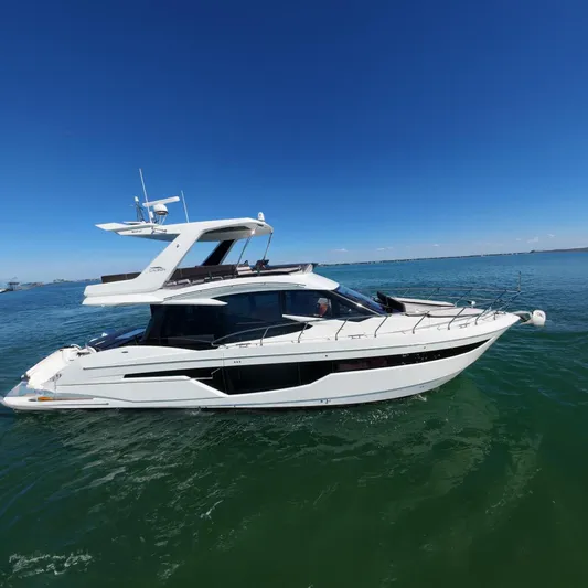 The Galeon 500 Fly's primary mission is to entertain. The innovative fold out bulwarks on the port and starboard sides creates beautiful balconies expanding the beam to 20’ adding 90 sq.ft. to the main deck to include an outdoor bar and lounge area. The aft cockpit settee and a telescoping table sit upon a rotating swivel that rotate a full 360 degrees so that it can face forward or aft toward the hydraulic swim platform or at any angle in between. When the table is lowered, the settee converts into a sun pad. In addition, there is a tender garage under aft garage door for storage or for a tender. On the flybridge, guests can take advantage of high-level features like a wet bar, Kenyon Grill, ice maker, sundecks, seating for 12 people and a folding table to accommodate large gatherings not to mention a second, fully redundant state-of-the-art helm station. Take advantage of this meticulously maintained Yacht. This boat is fully loaded with every available option and has spent much of its life on fresh water. Bottom just painted. Only two owners and never chartered. The owner has spared no expense on keeping this vessel in excellent condition. Additionally, this vessel has a Passport Preferred warranty thru September 2027.The Volvo engines only have 405 hours and 780 hours on the 15kw Onan generator.