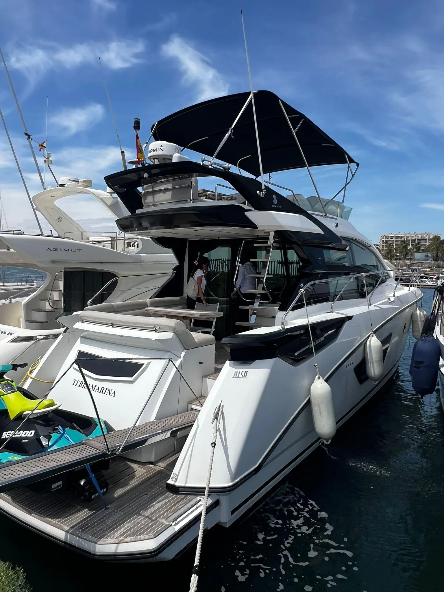 The Beneteau Gran Turismo 50 Sportfly is a luxury sport-cruiser that combines sporty performance with the comfort of a large yacht. Designed to offer intense sensations at sea, this model stands out for its advanced motoring, elegant exterior design and refined interior.