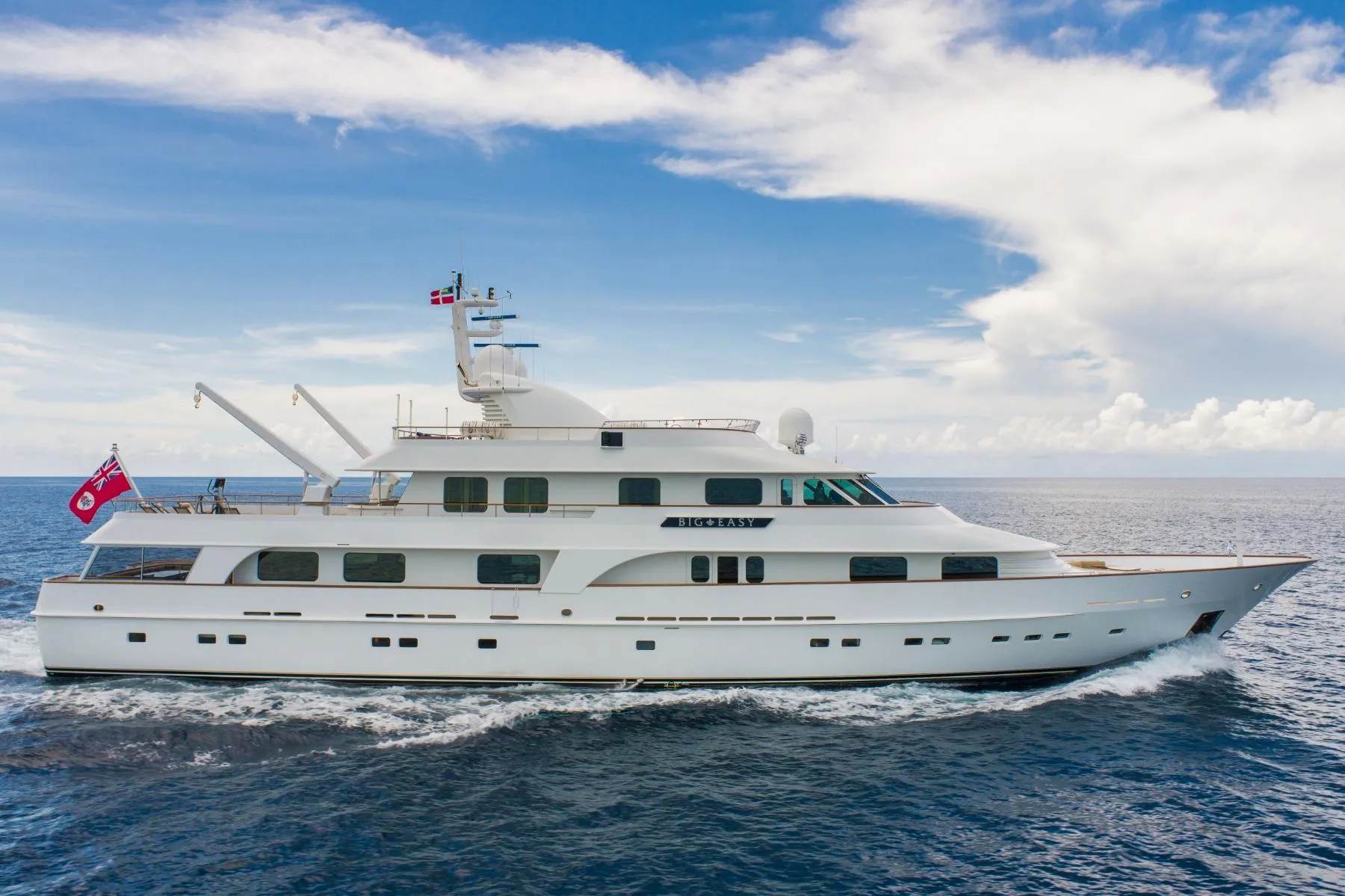 The general arrangement onboard features an impressive full-beam private master suite; located forward on the main deck with its own private lounge. BIG EASY has three queen staterooms and one convertible stateroom, allowing the option of two single twin beds or one king-sized bed. She has a sixth bunk cabin with twin beds. Each cabin is well-appointed, with en suite bathrooms and ample storage space.