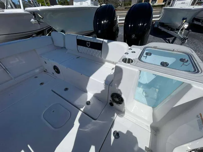 Introducing the stunning 2026 Sea Fox 268 Commander, a new center console boat that perfectly blends performance and style. With an overall length of 26 feet, this vessel is crafted from durable fiberglass, ensuring both strength and elegance on the water. Powered by twin Yamaha F200XSA2 outboard engines, each delivering 200 horsepower, it achieves an impressive cruising speed of 38 mph and a maximum hull speed of 58 mph, making it ideal for thrilling adventures. Equipped with an electric windlass, the 268 Commander enhances convenience while mooring. This boat also features two heads, providing comfort for all aboard. With a remarkable range of 400 miles, it invites exploration and long journeys. The Black Label Marine design elevates its aesthetic appeal, making it a standout choice for boating enthusiasts. Experience the perfect combination of power, comfort, and sophistication with the Sea Fox 268 Commander. Come see the professionals at Black Label Marine Group today and let us make your fishing and boating dreams a reality.
