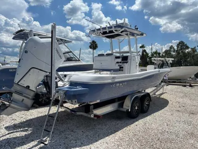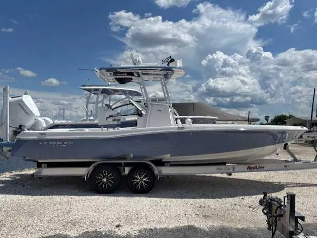 Introducing the stunning 2025 Caymas 28 HB, a remarkable new addition to the Bay Boats class. This sleek vessel measures an impressive 27.58 feet in overall length, showcasing a modern design with a modified Vee hull crafted from durable fiberglass. Powering this beauty is a formidable Mercury 400 Verado Cold Fusion V10 engine, delivering an exhilarating 400 horsepower, ensuring thrilling performance on the water. With a cruising speed of 40 mph and a maximum hull speed of 55 mph, the Caymas 28 HB promises an exciting ride, complemented by a generous range of 300 miles. The boat is equipped with a stainless steel 3-blade propeller, enhancing its efficiency and responsiveness. Designed for adventure and leisure, this boat embodies quality and innovation, making it an ideal choice for those seeking both performance and style on the water. Experience the perfect blend of power and elegance with the Caymas 28 HB.