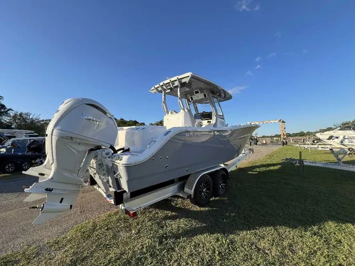 Introducing the stunning 2026 Sea Fox 288 Commander, a remarkable center console boat designed for both performance and comfort. With an overall length of 28 feet, this vessel boasts a sleek fiberglass hull featuring a Deep Vee shape, ensuring exceptional stability and handling on the water. Powered by dual Yamaha Twin F300XSB2 outboard engines, each delivering an impressive 300 horsepower, the 288 Commander achieves a cruising speed of 40 mph and a maximum hull speed of 62 mph, making it perfect for thrilling adventures. The boat's range of 500 miles allows for extended excursions without worry. Equipped with an electric windlass, this boat enhances convenience while docking and anchoring. The thoughtful design includes two heads, ensuring comfort for all aboard. The Sea Fox 288 Commander is a perfect blend of innovation and style, ready to elevate your boating experience. call the professionals at Black label marine Group today and let us make your fishing and boating dreams a reality.