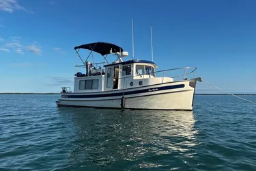 BLUE WANDER is a thoughtfully equipped Nordic Tug 34, ideal for the cruising couple who values comfort, quality, and ease of operation. With over 300 hulls built since the model's introduction in 1986, the Nordic Tug 34 has earned its reputation as a reliable and efficient coastal cruiser. Designed and built in Washington state, this single-stateroom, single-head trawler combines classic tug styling with modern amenities, offering the cozy livability of a floating condo, paired with the rugged seaworthiness Nordic Tugs are known for.