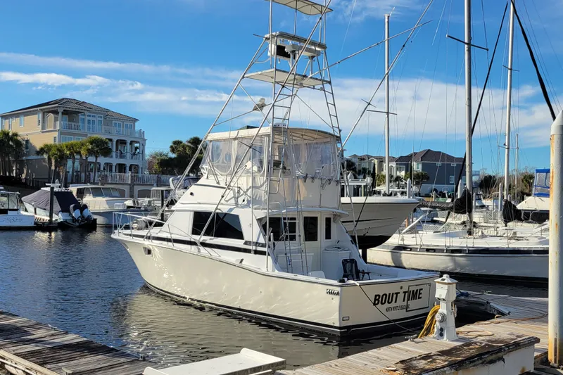 1979 Bertram 38’ Battlewagon — This classic Bertram has benefited from an extensive refit throughout nearly the entire vessel. The hull and topsides have been freshly painted, and she has been repowered with ultra-reliable 450 HP Yanmar diesel engines. Additional upgrades include a newer generator and a fully modernized electronics suite featuring dual 12” Simrad Displays with GPS, Chartplotter, Radar, Depth Sounder, and all new Gauges.