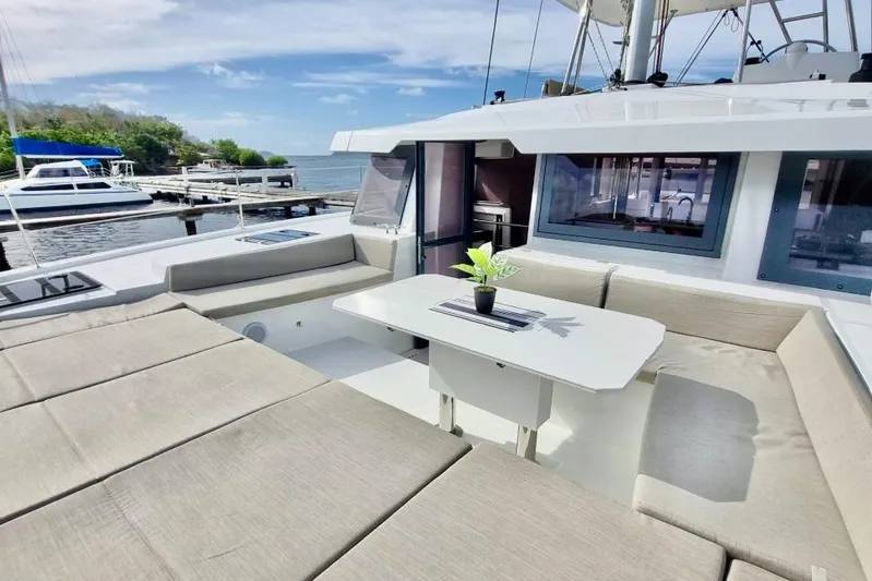 Designed for comfortable long-range cruising or charter use, this 5-cabin, 4-head Bali catamaran is powered by twin upgraded Yanmar 57 HP engines and equipped with a 13.5 kW Onan generator, watermaker, full 110V USA electrical system, and reverse-cycle air conditioning throughout. Sail handling is effortless with electric winches, a Doyle Stack Pack, and a modern Raymarine navigation suite.