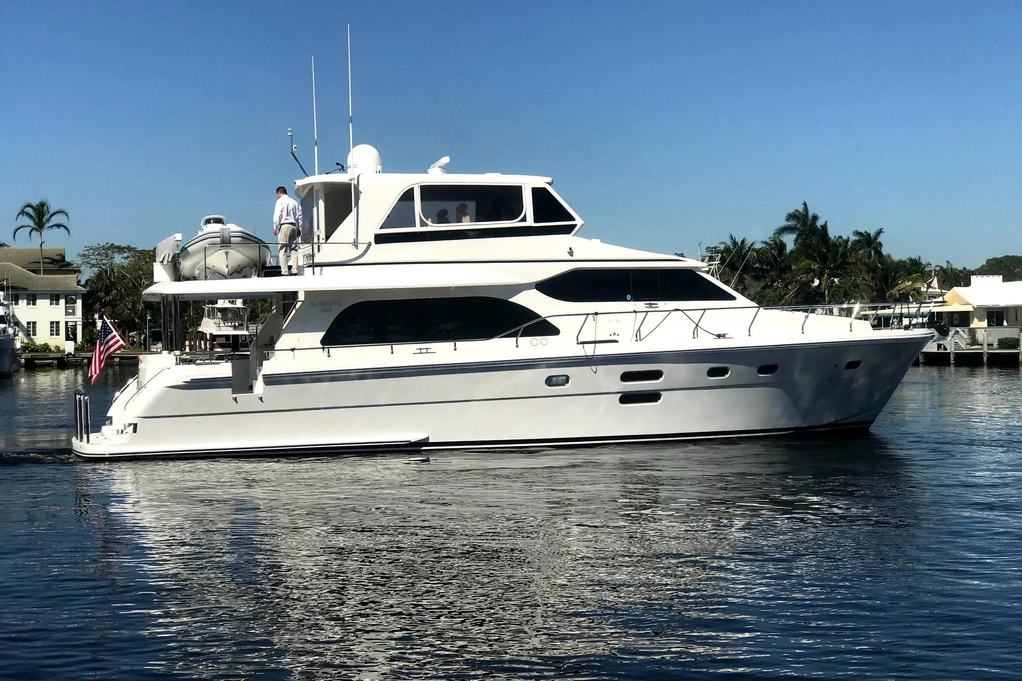 This Hampton 620 motor yacht offers best of all the worlds for a cruising couple, nice aft deck which flows into the salon, two steps up to a large galley with nice appliances and pass through counter to a large U-shaped settee. The 62 Hampton has several updates over the 63 Hampton which includes a larger aft deck and new exterior styling with curved salon windows and other updated appointments.