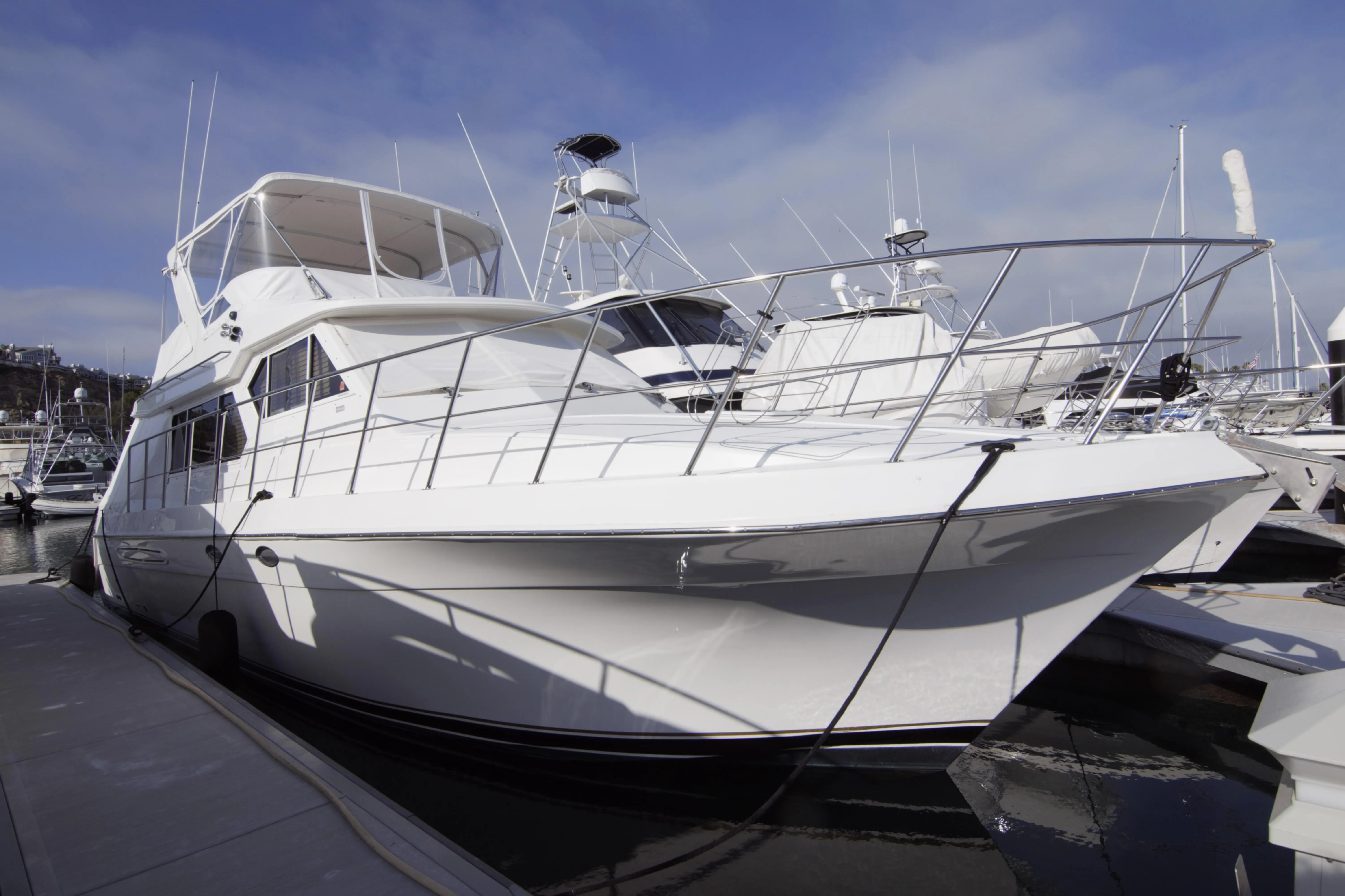 The 44 Classic is a contemporary West Coast cruiser with a spacious interior. She's constructed on a solid fiberglass modified-V hull with moderate beam, a well-flared bow and an integral swim platform. She has wide side decks, a roomy flybridge with a cockpit overhang for storing a tender. She is held in a transferable LLC and is professionally maintained with all equipment and furnishings regularly serviced and operational.