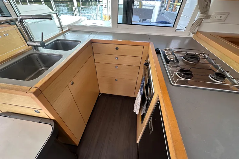 •  Galley in main salon to Port with direct access to cockpit through sliding window