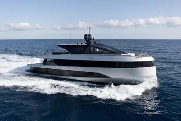 CARAT is a 27-metre wallywhy200 delivered in 2024, offered in like-new condition with under 500 engine hours. She is registered under the 24-metre load line, reducing running and berthing costs while delivering an interior volume of around 200 GT, typically associated with much larger yachts. This is achieved through the model’s full-wide-body layout, a defining element of her futuristic spaceship concept.