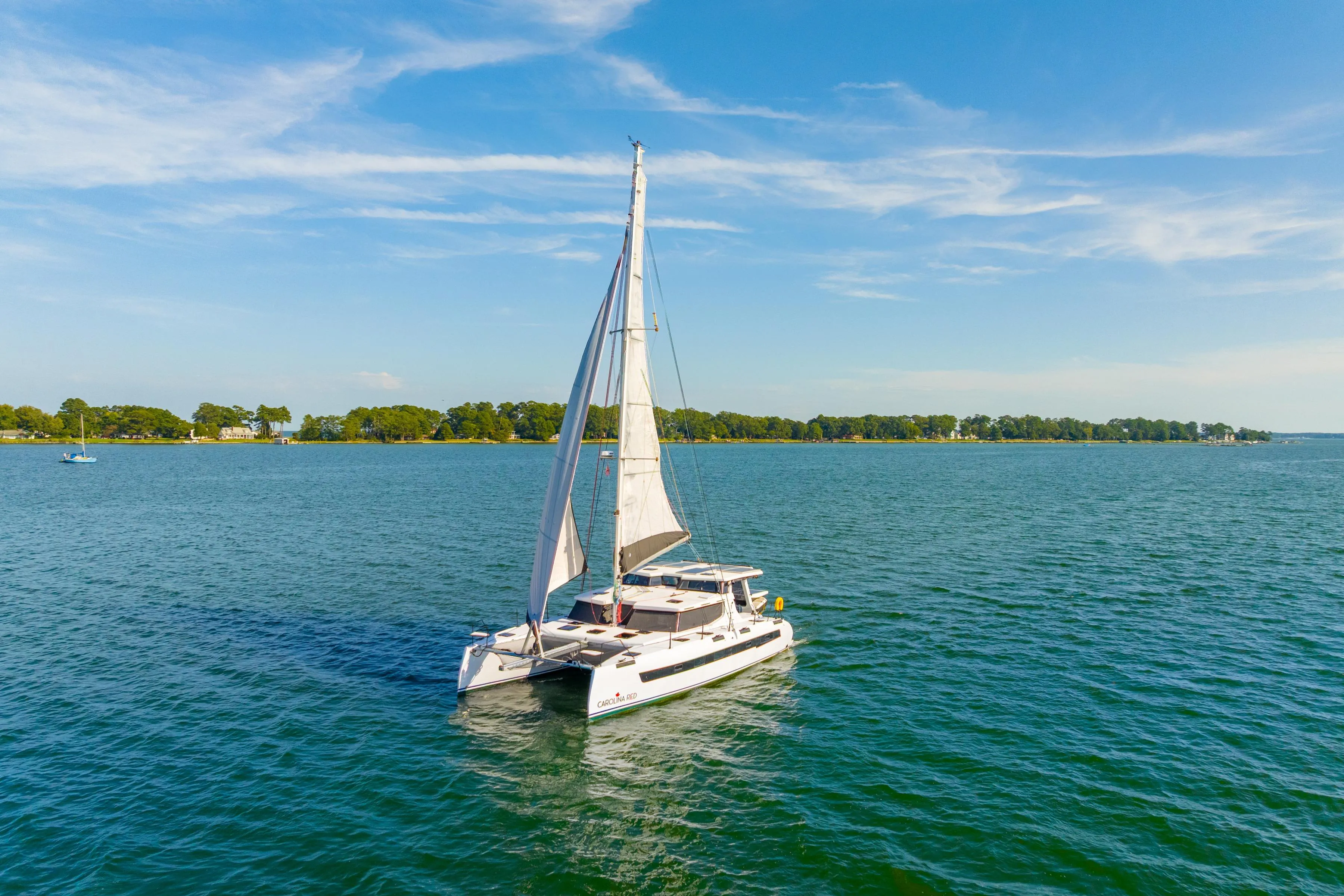 Inside, the bright and modern interior is enhanced by oversized windows and deck hatches that connect the living space to the sea. Every element of Carolina Red has been designed for comfort, safety, and serious cruising. She is guaranteed to deliver grace, space, and pace in every nautical mile.