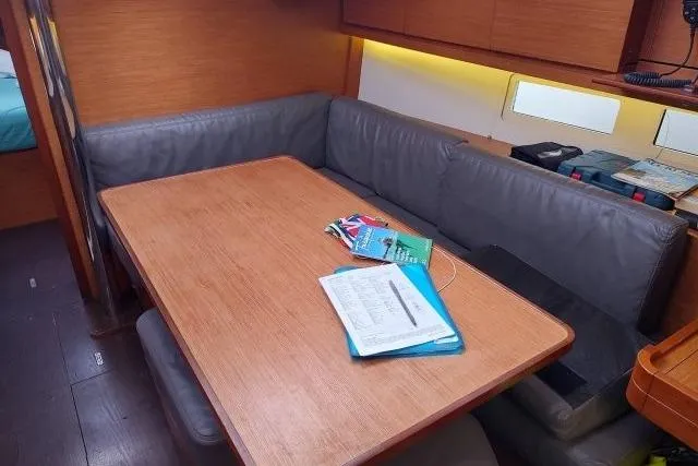 • Saloon banquette: U-shaped banquette on port or starboard side depending of version.