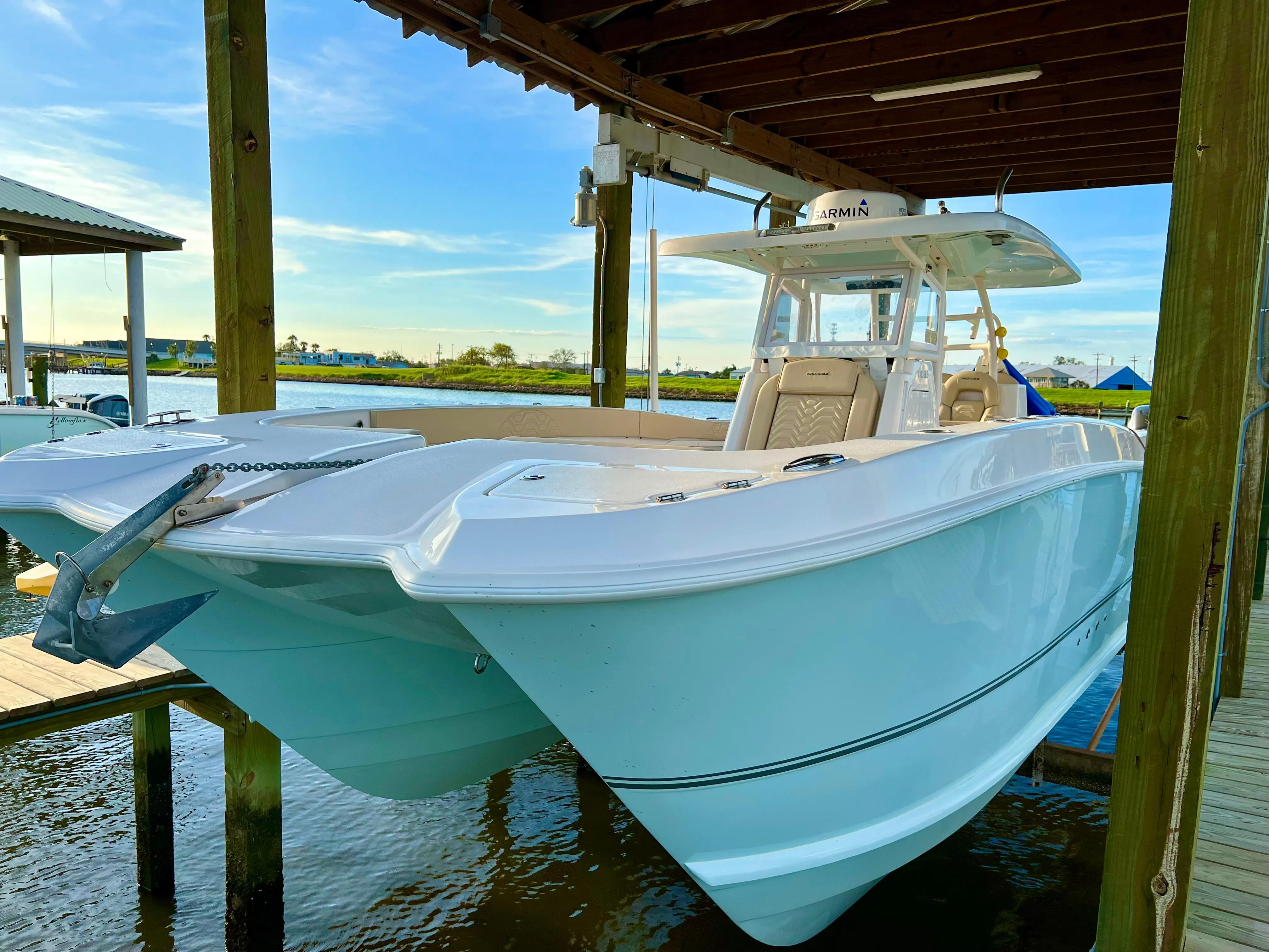She is powered by twin Suzuki 350hp that are under warranty until 2027!