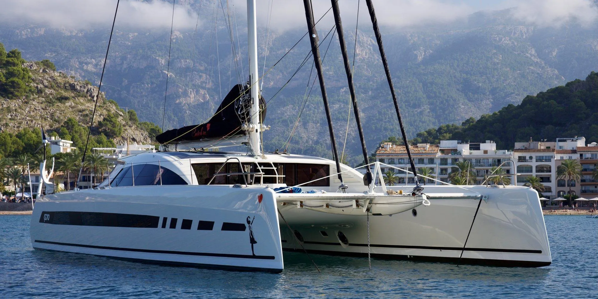 The GP70 is 21.00m long and is designed by the famous French naval architecture firm VPLP. Built 80% in epoxy carbon sandwich, the same material used for racing sailboats, she is characterized by her lightness, performance, elegance and ability to navigate silently over considerable distances with a small crew. The shipowner's priorities were simplicity of operation, robustness and reliability, silence on board, and autonomy or "very long range". This cruising catamaran offers superior comfort, unparalleled autonomy for this type of vessel thanks to minimal use of fossil energy for its operation (renewable energies + rationalization of large consumers) as well as voluminous fuel tanks. Naturally, this allows her to produce drinking water for prolonged navigation without refueling. The interior of the first copy of this small high-tech series consists of an owner's hull with a double cabin and possibly two additional berths, 2 double guest cabins and 1 crew cabin in the other hull, all designed to offer comfort, safety and autonomy. The architects have created a catamaran with luxurious living spaces without compromising on her performance.