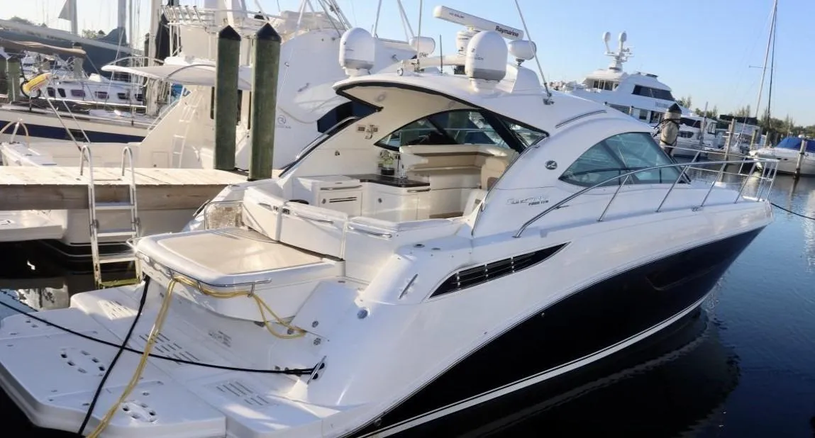 This 2013 Sea Ray 410 Sundancer has many modern options. Owner has installed Marine Night Vision security camera system (see images for a sample picture). And a wireless security system that gives you real time alerts with live and recorded videos. Also, a Hull Shield HD4 Ultrasonic Antifouling System which provides antifouling protection for hulls, drives, and other parts of a vessel that are prone to marine fouling. Bottom was just accomplished in Dec 2023, New Trim Tabs were installed, and Zeus Pods were coated with Prop Speed Protective coating.
