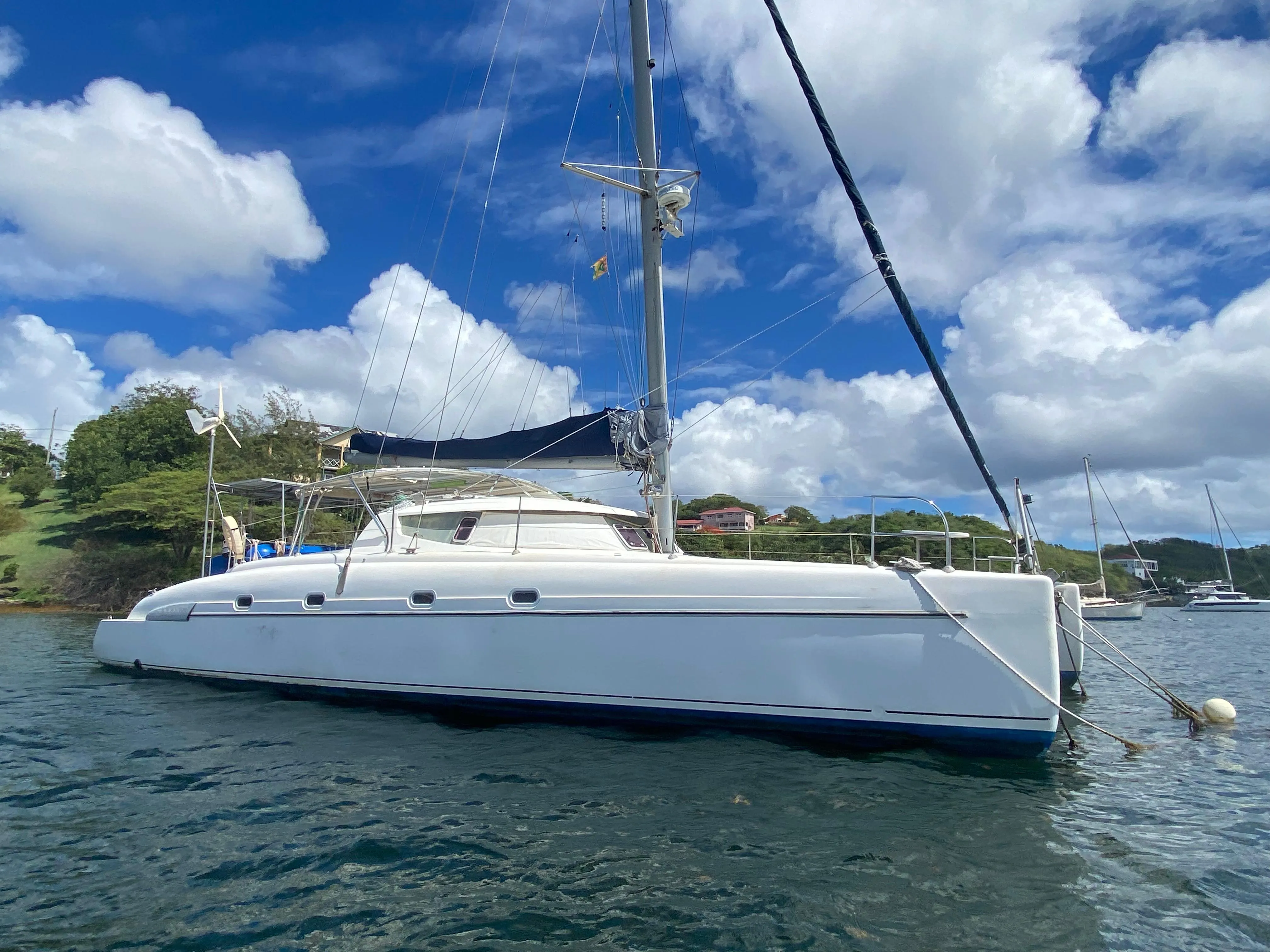 1998 Fountaine Pajot Bahia 46 – Solid cruiser with some major upgrades, price just heavily reduced and in need of some updating.  This 1998 Fountaine Pajot Bahia 46 is a fantastic opportunity for a savvy buyer looking to step into a well-equipped cruising catamaran with many of the big-ticket upgrades already completed. She’s not perfect — she needs an overhaul and some TLC to bring her fully up to spec — but is a solid boat, and some of the expensive work is already done.