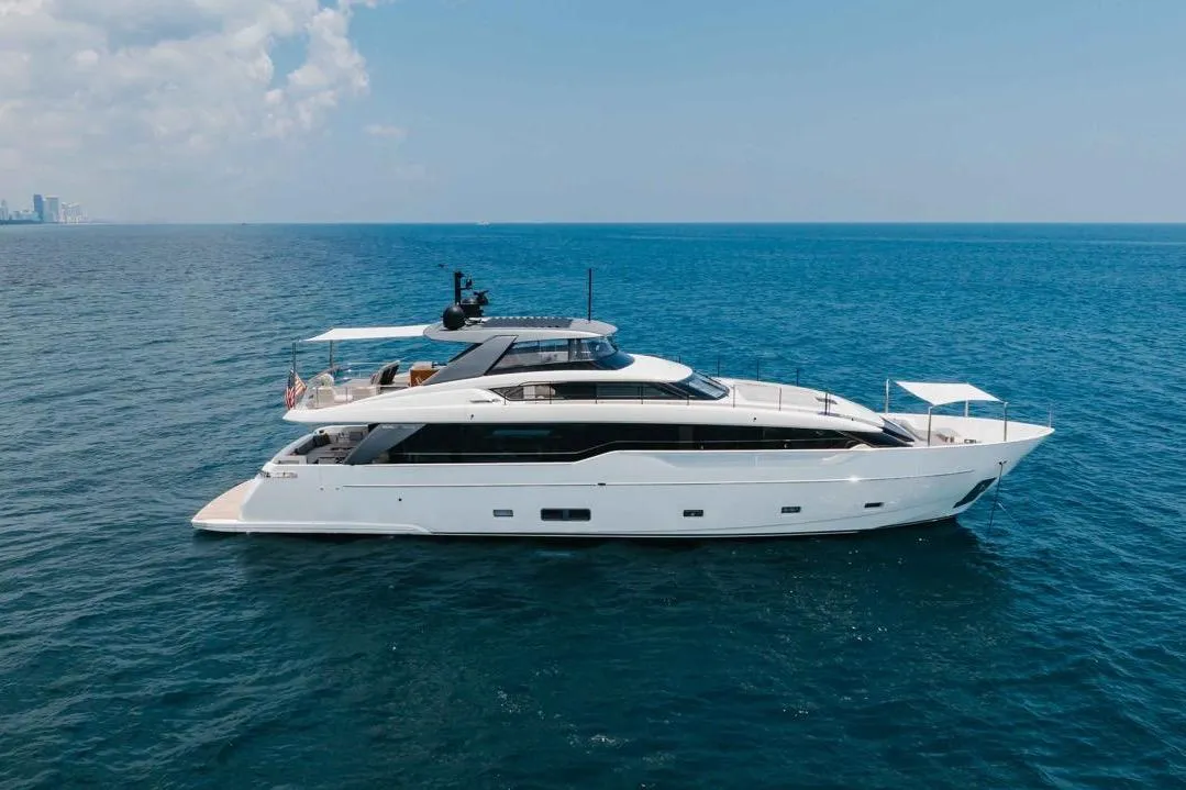 Chameleon is a fully optioned Americas edition yacht, flagged in the United States with Duty paid. A wide range of desirable features and options include CNC electric stabilizer fins, a louvered sunroof, stern garage with a hydraulic swim platform, and more. Furthermore, the owner has invested a significant amount in additional aftermarket upgrades, including: Control 4 iPad-controlled AV, a starling internet infrastructure, upgraded sound, Ubiquity AI cameras, water filtration, extra refrigeration, high-capacity ice makers, upgraded AC chillers, flybridge eisenglass, and a Williams tender.