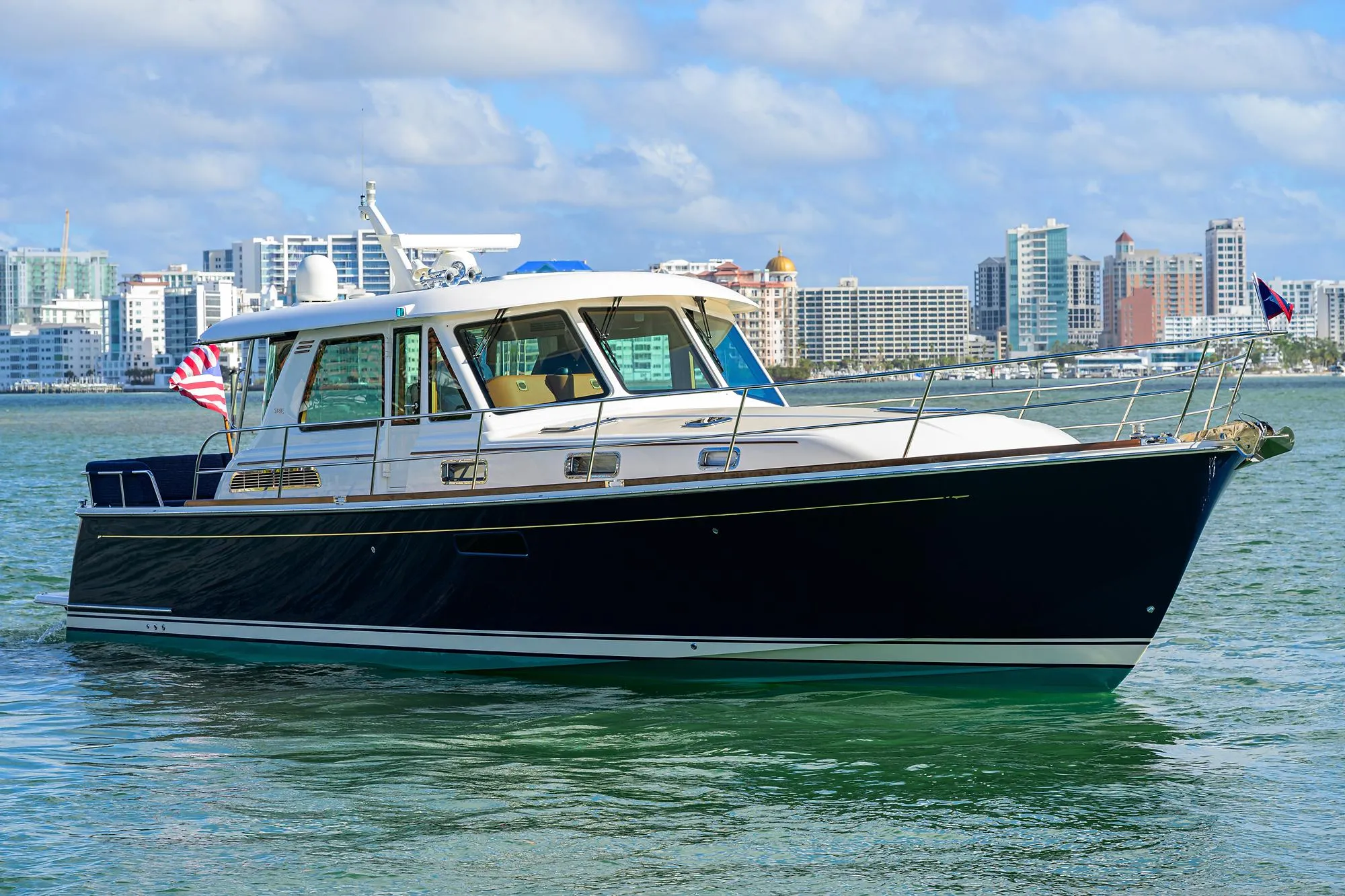 Cheers was delivered in Portland, Maine at Dimillo's Yacht Sales and has extensive service history. She boasts low hours (400) on her twin Volvo pod drives and 466 hours on her Northern Lights generator. Other popular options include;