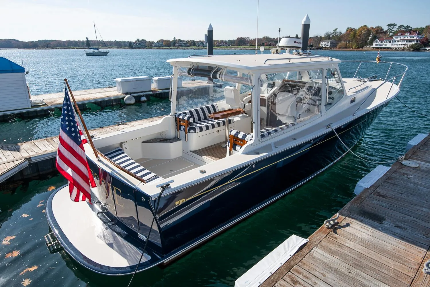 CHESSIE is a very nice example of the popular MJM 34z Downeast, with the desirable hardtop, that has been used lightly in Maine summers and stored and serviced inside every winter. The 34z was designed by Doug Zurn to be the perfect size for a family or couple to enjoy on a daily basis as well as coastal cruising for a couple. The pilothouse comfortably seats six and can be enclosed completely or opened up to enjoy a nice day on the water. Down below, a simple, open interior provides a U-shaped seating area with table that converts to a large double berth, an enclosed head and small galley – everything needed for a day or weekend on the water. Her high quality construction by Boston Boatworks and rugged design by Doug Zurn provides comfort and safety in offshore conditions as well as excellent fuel efficiency underway. Currently stored inside getting her annual service done with winter storage paid.