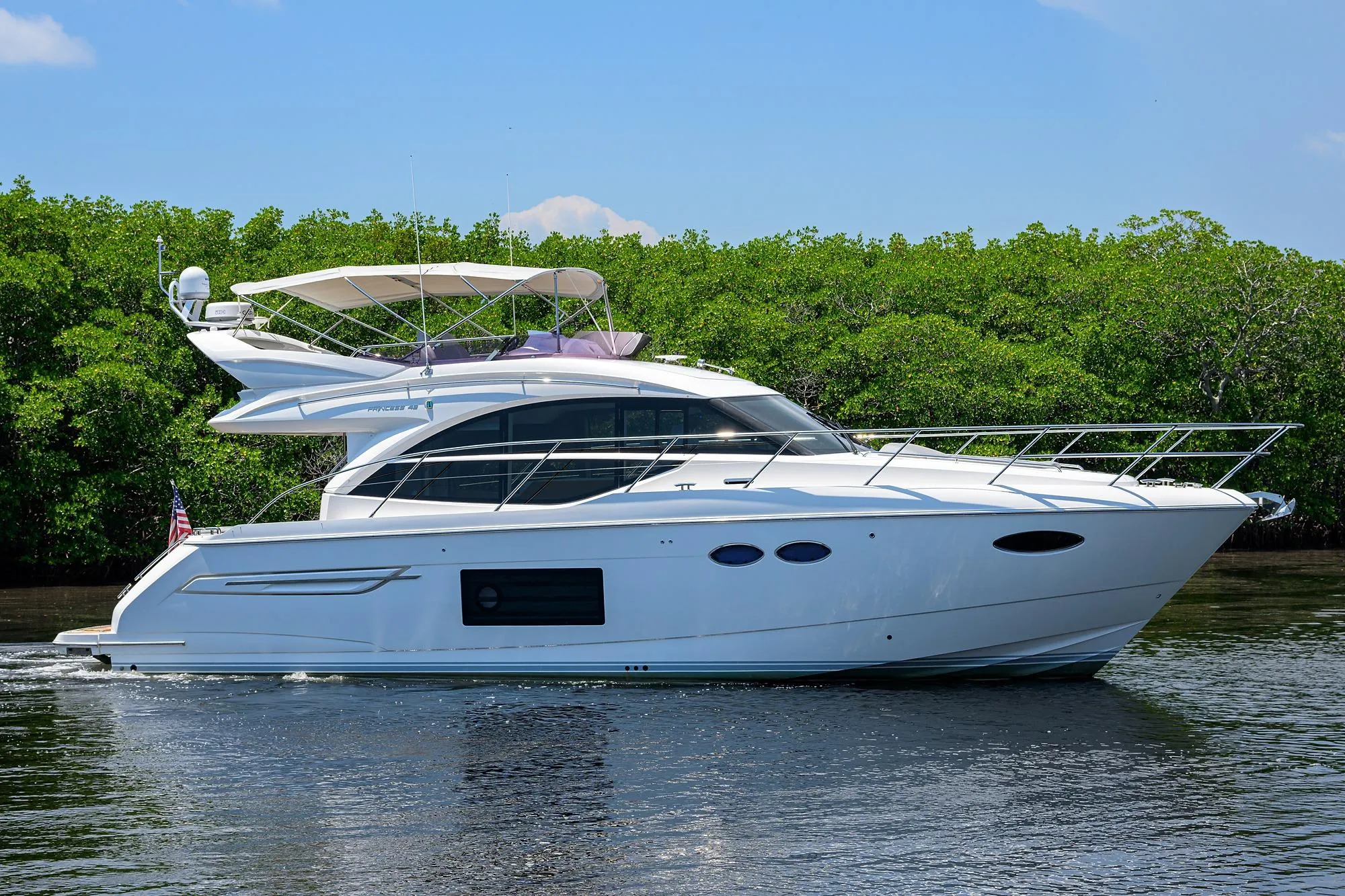Step aboard CHILL, a 49’ Princess F49 Flybridge and experience a seamless fusion of British craftsmanship, cutting-edge design, and unrelenting luxury. A rare opportunity to own one of the most sought-after models in the Princess fleet. Chill has a 3 stateroom/2 head layout, with a generous salon and aft gallery area for entertaining as well as equipped with Seakeeper gyro stabilization, Starlink, Satellite TV, Garmin electronics, recently upgraded sound system and Lumishore lighting on the flybridge, stern and underwater.