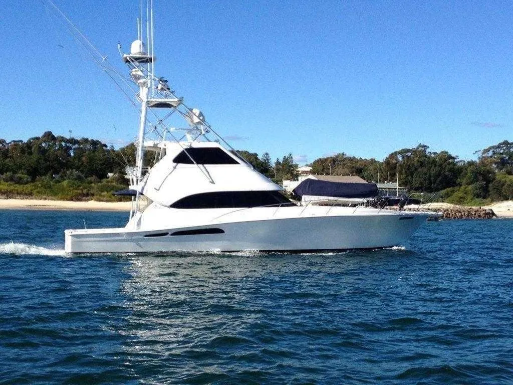 Owner wants to downsize and will consider trades. Completely turn key Riviera 58' Enclosed Bridge ready to fish any tournament. Every inch of this battle-wagon from the tower to the transom has been thought out and truly customized by big game fisherman. From the transom 3 live bait tanks to custom tower/rails and observation chairs, this is one of a kind tournament boat. The only Riviera with mezzanine. Other options include a 3/4" teak cockpit, aft bridge, trolling valves, raised riggers, Eskimo ice chipper, cockpit camera with digital video recorders as well as an underwater HD thru hull camera, two deep sea high output underwater lights, and these are just a fraction of the customization. This vessel has the wow factor back at the dock with an impressive lighting package which makes this vessel the center of attention on any dock.