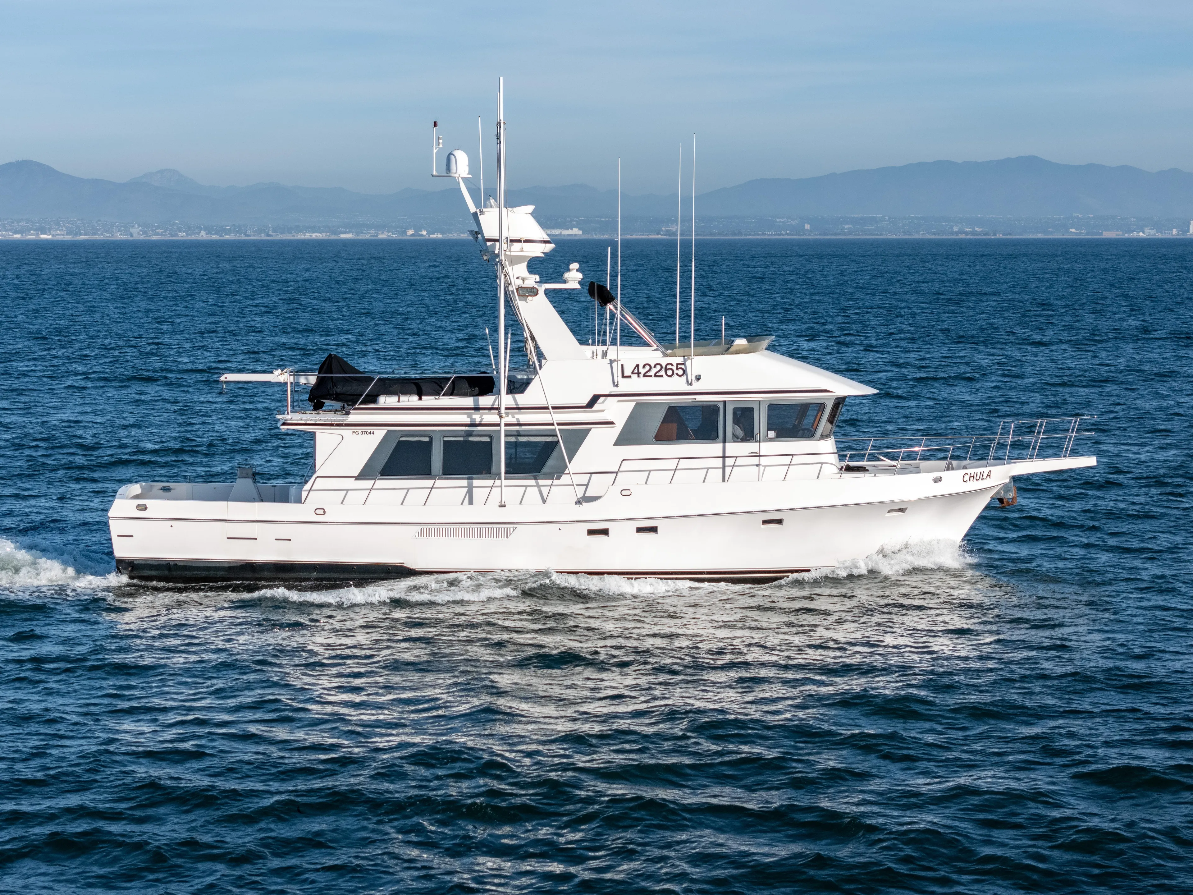 The Chula is held in a single asset LLC and has a proven business model that affords her next owner huge advantages unique to her. (Please contact listing broker for details) Professionally maintained and skippered by one of the most successful captains on the west coast since new. Will be an excellent long range cruising or expeditionary yacht as well as a long range Sportfisher!