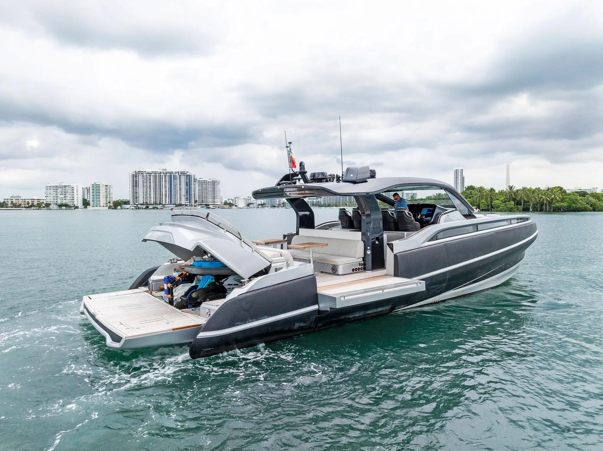 The 2022 SACS Rebel 55, named “CIAO L,” is gearing up to make a splash at the upcoming Palm Beach International Boat Show, scheduled for March 19-23, 2025, in West Palm Beach, Florida. Priced at US$1,965,000, this luxurious 55 ft 9 in vessel, crafted with a fiberglass hull and inflatable tubes, blends Italian design with high-performance capabilities. Powered by twin Volvo D11 IPS 950 engines (725 hp each, with only 125 hours), it boasts a maximum speed of 36 knots and a range of 300 nautical miles. Featuring two guest cabins, two heads, and premium amenities like teak decking, a spacious sunbed, and advanced navigation systems, this RIB hybrid is perfect for luxury cruising and entertaining. Located in Miami, Florida.