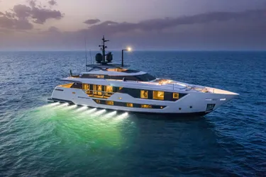 Hull form is designed on the basis of experience on previous similar Yachts, taking into account resistance, seakeeping and maneuverability characteristics. The structural design and assessment is designated according to the most recent experience acquired by the Builder in design and construction of GRP for this type of Yacht and according to the RINA Classification Rules. The hull is divided into 3 watertight compartments, by the watertight collision bulkhead on the forepeak and watertight Engine room bulkhead, in accordance with Classification rules. The watertight collision bulkhead is positioned in accordance with the Classification Rules. A chain locker space suitable to contain both port and starboard chain cables are provided forward the watertight collision bulkhead.