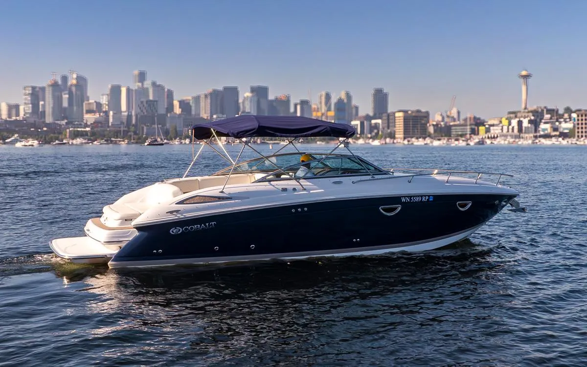 This Cobalt 303 is a high-quality performance and luxurious sport boat that has been kept under cover in fresh water. Her immaculate condition, shows that she has been well-maintained and cared for. She is spacious, comfortable, and designed for both relaxation and watersport activities, making it an ideal choice for boating enthusiasts. For a night away she also has a small cabin with berth and a head.