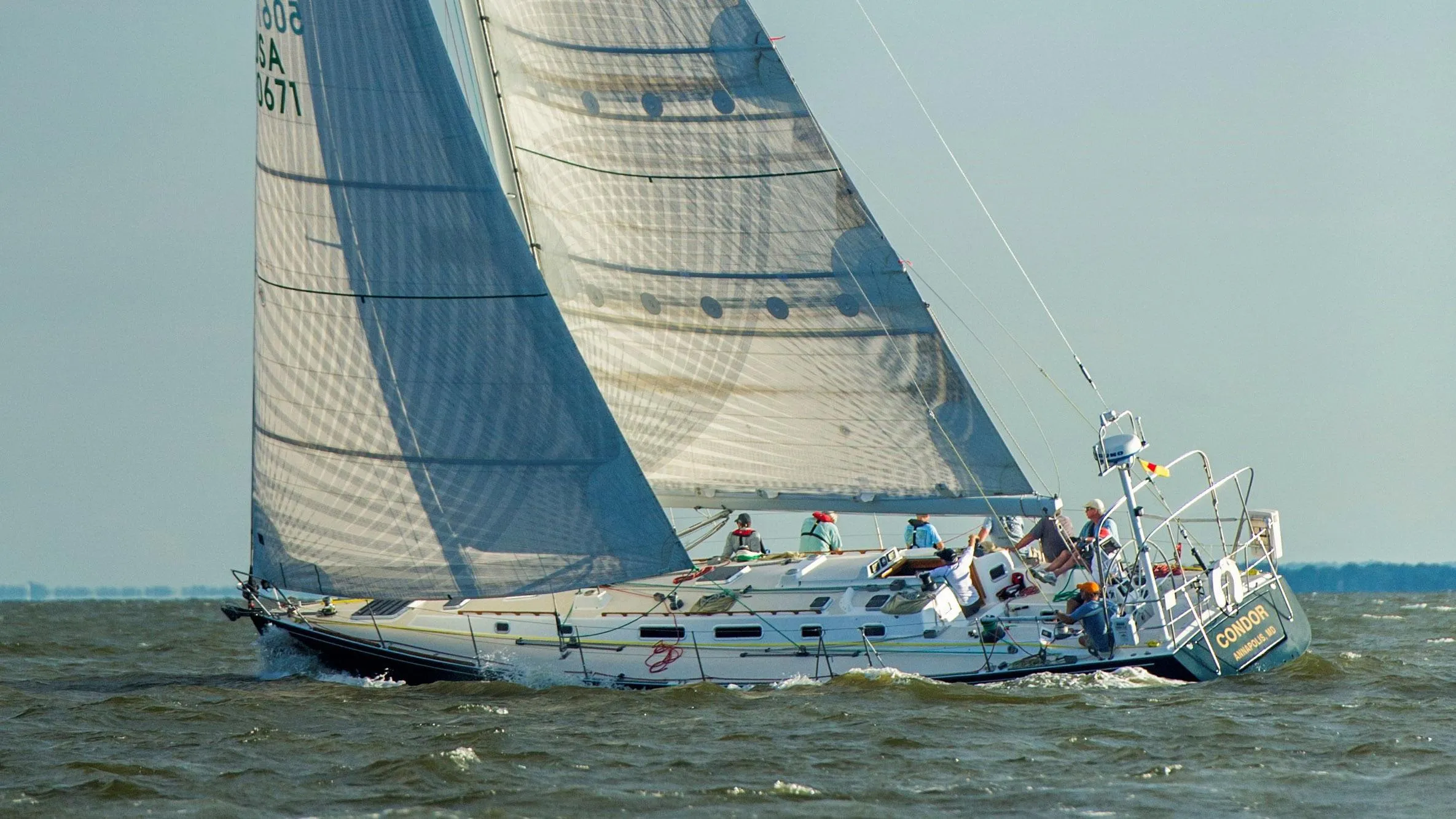 The J-160 is as easy to handle and sail as a traditional 42-footer. This boat can be managed by 2 to 3 people without relying on powerful or heavy electromechanical devices. The design goal for the J-160 was to set new standards for cruising yachts of this size. The experience at the wheel is one of joy and control, as the boat leaps forward in a gust of wind with both power and stability. Sail adjustments, such as putting the rail under or shortening the sail, shouldn’t be necessary until wind speeds exceed 20 knots. The J-160 is designed to glide effortlessly through waves when sailing upwind, keeping the crew dry and leaving no significant quarter-wave behind. While running with the seas, it maintains excellent directional stability and sufficient forward buoyancy to ride over the waves ahead.