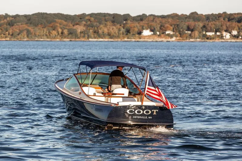 COOT is a fine example of the 29 Runabout – always loved by her owners and maintained & updated by Hinckley to the highest standards. This little gem has enjoyed the benefits of brief summer seasons on the water, followed by meticulous winter storage within the confines of Hinkley Yacht Services, enrolled in the Yacht Care package year after year. She features teak decks, a beautiful flag blue hull, recent cushions and a recent comprehensive 500 hour engine service.