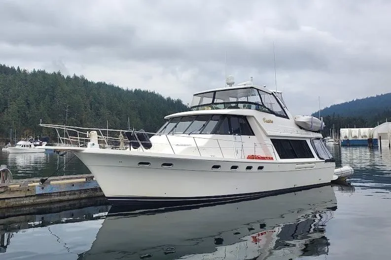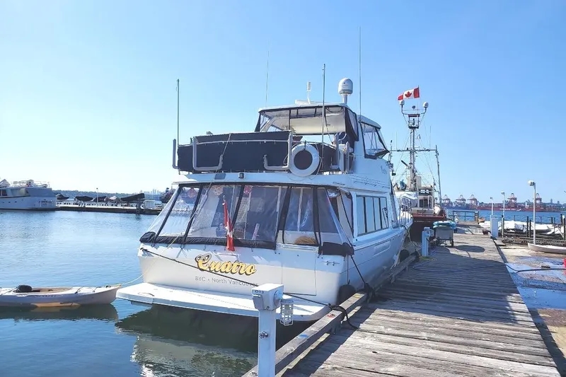CUATRO is a well-equipped and highly capable 1998 Bayliner 4788 Pilothouse Motoryacht — one of the most popular and proven coastal cruisers on the BC Coast. Known for her exceptional interior volume, raised pilothouse visibility, and desirable three-stateroom, two-head layout, the 4788 remains a top choice for extended cruising, liveaboard comfort, and entertaining.