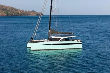 The high-tech carbon-catamaran that blends elite performance with sustainable cruising. With ultra-light carbon/epoxy construction, daggerboards, dual swing helm stations and a hybrid electric/diesel drive, it delivers race-boat responsiveness and long-haul comfort in one refined package.
