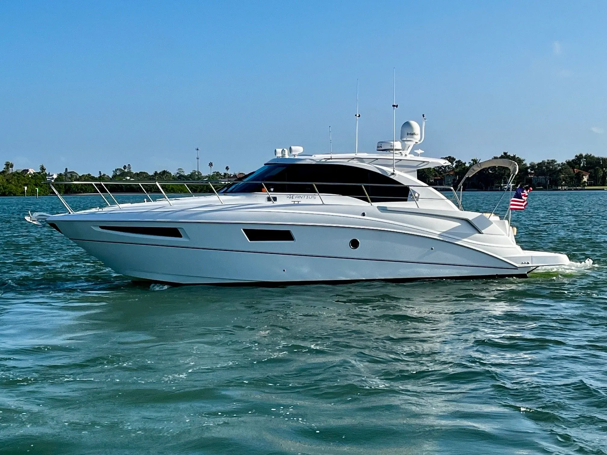 ­Step aboard “Cuz I Can” and experience the perfect blend of luxury, performance, and effortless handling. This 41 Cantius offers a spacious one-level salon and helm station that is fully climate controlled yet transforms into an open-air retreat with the touch of a button thanks to her large electric sunroof.